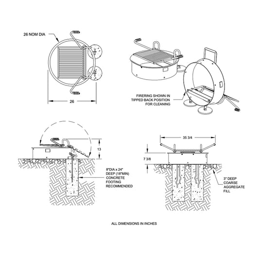 Campfire Ring with Adjustable Cooking Grate - 26"