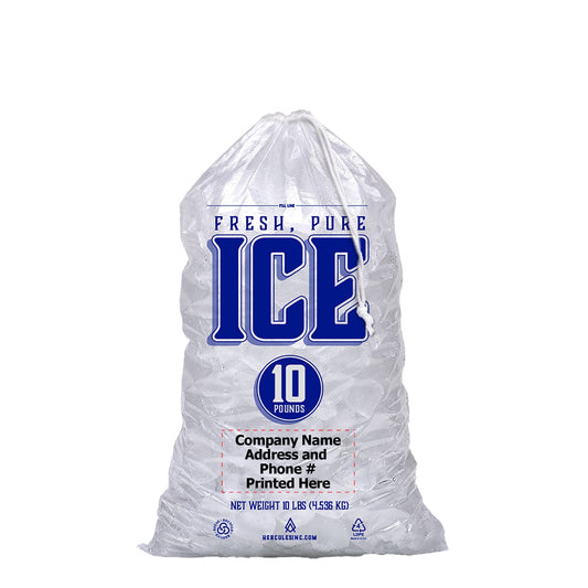 Custom Imprint 10# Drawstring Ice Bags - Fresh, Pure, Ice - 500/Case