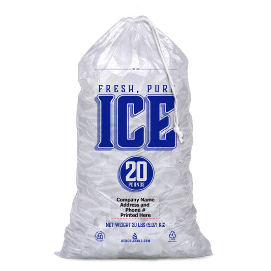 Custom Imprint 20# Drawstring Ice Bags - Fresh, Pure, Ice - 250/Case