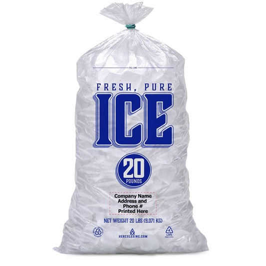 Custom Imprint 20# Ice Bags - Fresh, Pure, Ice - 500/Case