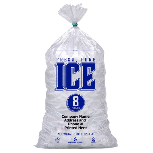 Custom Imprint 8# Ice Bags - Fresh, Pure, Ice - 1,000/Case