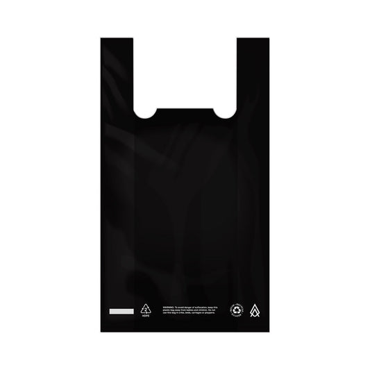 Heavy-Duty 1/6 Size .91 MIL Black Warning Language Plastic T-Shirt Bag
