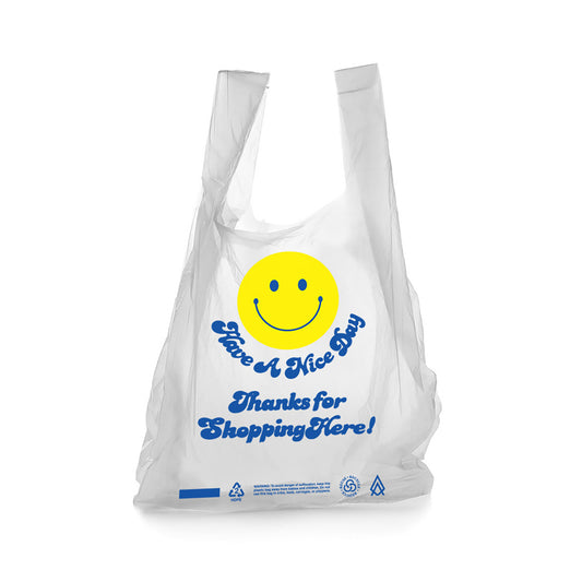 Happy Face T-Shirt Bag on a Roll White HDPE Plastic